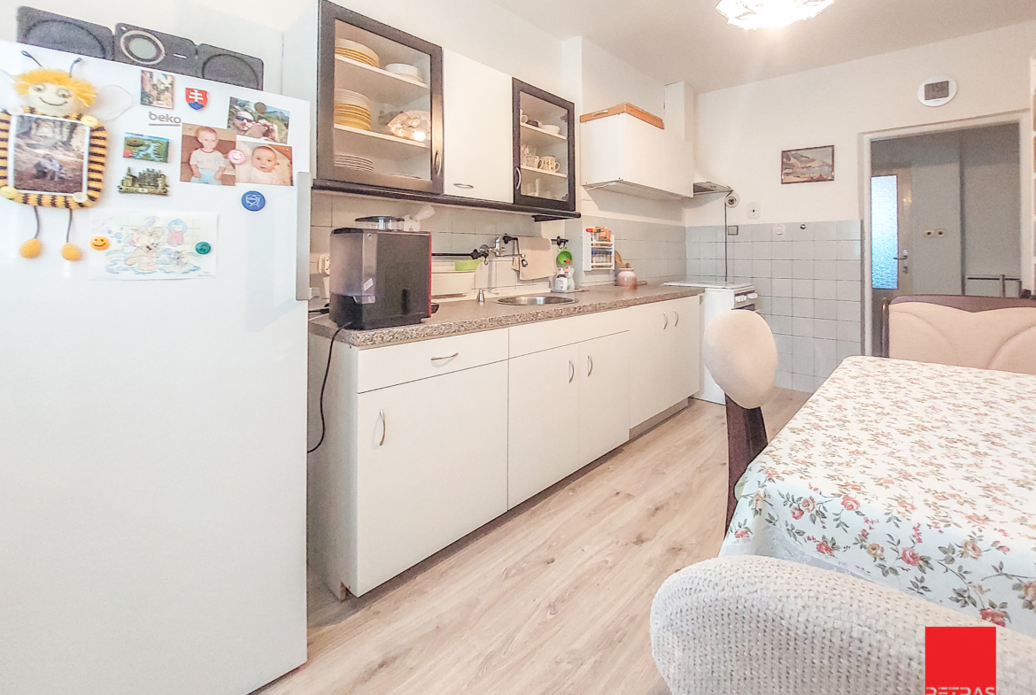 DOM Predstavte si dom, ktorý už na prvý pohľad pôsobí pevne a dôveryhodne. Tradičná stavba zo 70. rokov s celkovou zastavanou plochou 172 m² stojí na pozemku s rozlohou 639 m² – a navyše je celý podpivničený. To znamená viac priestoru, viac možností, viac života podľa vašich predstáv. DISPOZÍCIA: Prízemie – 3 izby, kuchyňa, kúpeľňa a samostatné WC. Miesta, kde sa bude odohrávať váš každodenný príbeh. Poschodie – 2 izby s výstupom na balkón. K tomu samostatné WC – a možnosť obe izby rozšíriť a zväčšiť podľa toho, čo si budete priať. Pivnica – celý svet praktických riešení: garáž, práčovňa, kotolňa, sklad či hobby priestor, kde môžete nechať rásť svoje nápady.
